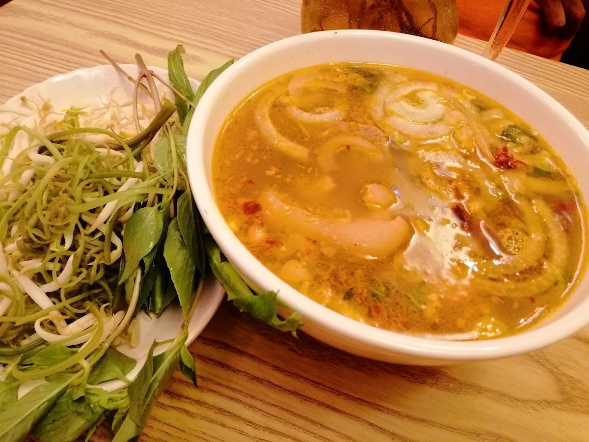 Enjoyed the very authentic Bún bò Huế here (spicy beef soup noodle). The Bánh mì (Vietnamese sandwich) was pretty good too. The environment was simple and lively. Warm hospitality from the servers. The only downside is, parking can be a nightmare, so either be prepared to walk from far, or go there with a scooter.